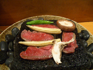 飛騨牛の溶岩焼き~。