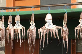 小さな船着場に到着して、降り立ってみるとそこはタコの島、こんな光景が見られます。