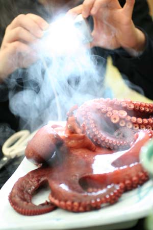 茹でたてのタコが登場!