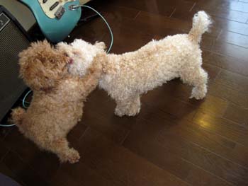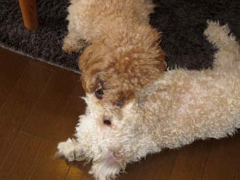 散歩から帰っても、元気な二匹は遊んでます。