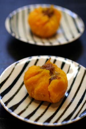 *牛しぐれ煮のかぼちゃ茶巾絞り*