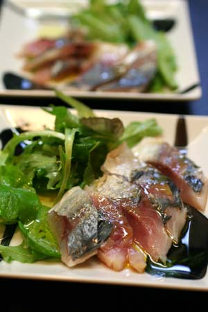 刺身でも食べれる鯵を切り身で買ってきて、スモークチップをフライパンで煙を出しておいて、さっと燻しただけ。