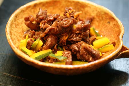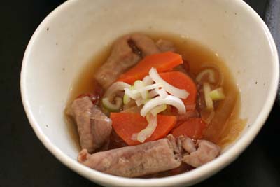 牛しぐれ煮がまだ残っていたので、それとかぼちゃの皮の残りを合わせて出しました。