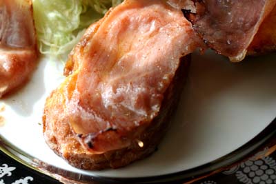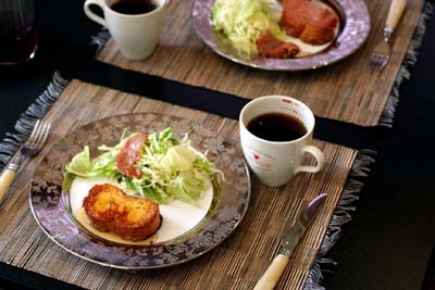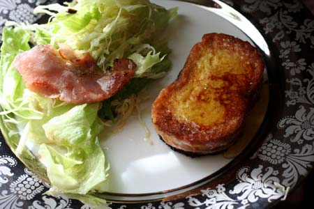夫には、生ハムを添えた甘くないフレンチトースト。