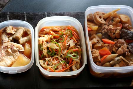 カロリー制限のある母のために少量づつそれぞれを一盛りにして。
