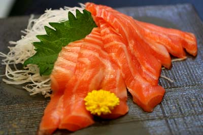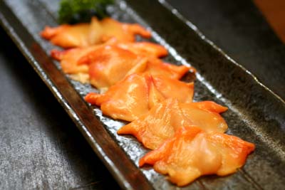 サーモンのお刺身。あ、貝じゃないですね、これは。