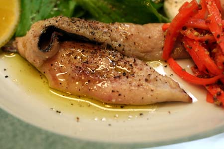 これが、なんちゃってあわび風で美味しいんです。ほら貝なので、その塊りはとっても大きくって、二人で全部は食べきれません。
