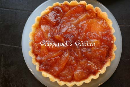 ミルフィーユを作ったときに、カラメルに絡めたアップルフィリングが余っていたので、それとカスタードクリームで作ったカラメルアップルタルト。