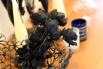 これに合わせて、黒の造花と黒いワイヤーのバスケットも購入。