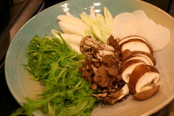 水菜を使いたいので、野菜は水菜、葱、椎茸、舞茸、大根。豆腐はあったけどやめておきました。