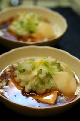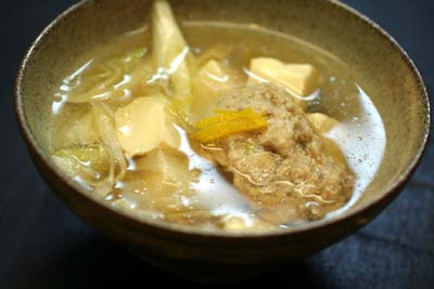 葱と豆腐も入れて、仕上げに柚子の皮を散らします。