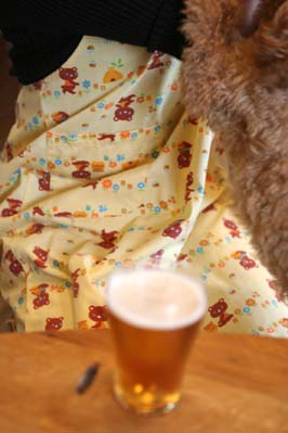 「じゃ、お料理教室を始めますね。ハイ、まず最初はビールを飲みましょう。」