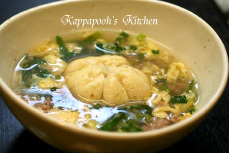 *ひき肉入り豆腐饅頭・ネギニラスープ*