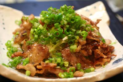 豚肉はセモリナ粉をつけて油を引かずにフライパンでカリカリに焼きました。