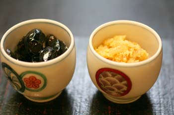 まずはビールを飲みだした夫に、うにくらげと頂き物の丹波の黒豆を出しました。