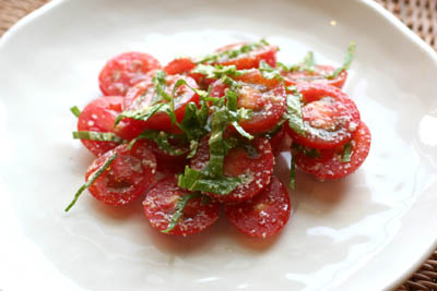 本当は別皿でプチトマトとバジルを合わせたサラダを用意していたのでした。