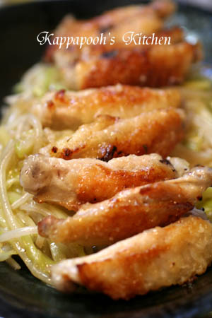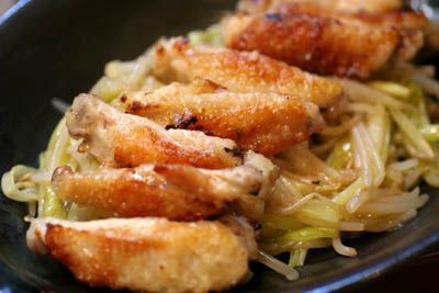 *鶏手羽中のこんがり焼き・黄ニラもやし炒め添え*