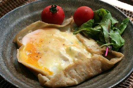 一枚焼いて食べたところで夫がもっと食べたいと言うので、二枚目は鶏胸肉と卵、チーズを乗せて・・・。