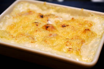 ジャガイモをレンジで加熱して皮をむいて、裏ごしします。鱈の切れ端も酒蒸しして細かくしてジャガイモと合わせて、生クリーム・塩・プロヴァンス風のハーブをほんの少々加え、混ぜ合わせます。