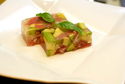 *アボカド・ホワイトアスパラ・生ハムのゼリー寄せ*
