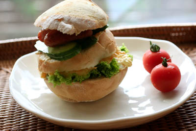 シンプルなパンだったので、いろいろ具をはさんでサンドイッチにしました。