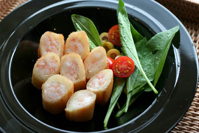 片栗粉の代わりに吉野葛を使ってとろみをつけたこと、椎茸がなかったので中に詰めたのが海老のすり身に加えたのはねぎだけだったこと・・です。