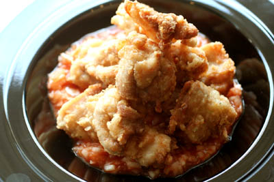 柔らかくなるように一時間ほど蒸したものを天ぷらにして・・・。