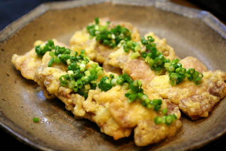 ねぎと塩ポン酢、辛子を合わせたタレをかけました。