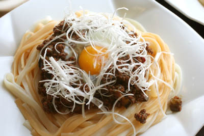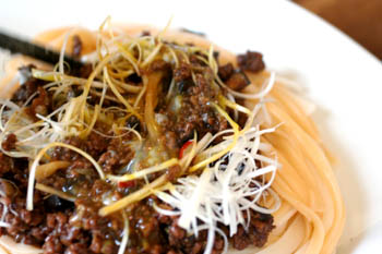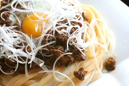 麺は冷たくして、温かい肉味噌をかけました。