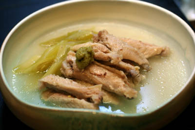 30分~40分ほど煮たら、器に移し、わさびをスープに溶かして、肉にもわさびを盛って出来上がり。