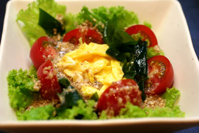 ふわふわに焼いた卵焼きとわかめをあわせたサラダです。