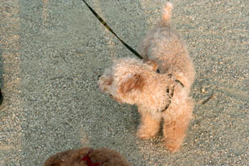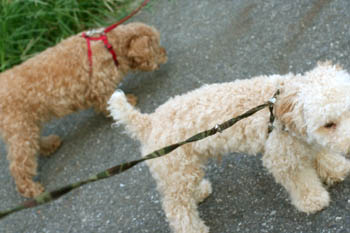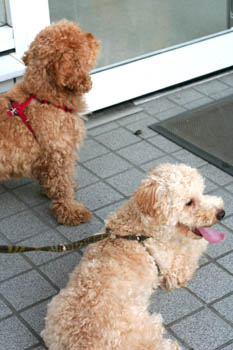あ、でも写真で見てみるとぷーの方が忠犬っぽい!びーちゃんは飽きてしまって座り込んでます。