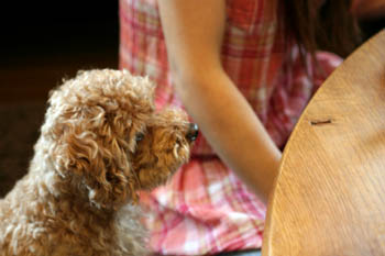 びーちゃんは、私の背後からよってきて、後ろから私の肩に前足を乗せて、えり巻き状態で顔をなめてくるのです。