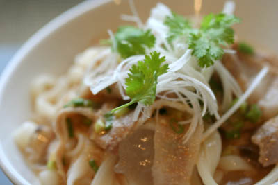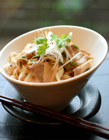 豚を適当な大きさに切ってさっとゆでて、タレに入れておく。