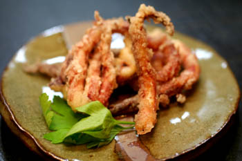 ニンニクをすりこんだげそに塩・コショウして片栗粉をまぶして揚げたものです。