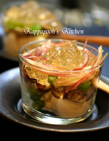 涼しげに冷奴を・・と思ったのですが、ちょっと夏野菜を組み合わせてまたジュレを作って合わせてみました。