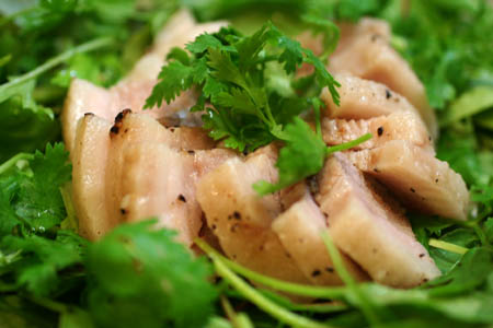 これにナンプラーソースを作りましたが、塩豚にしっかりお味がついてるので、全体にはかけずに、生野菜だけにかけていただきました。