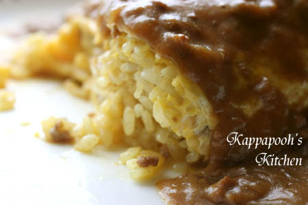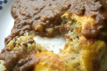 オムライスの中味は、炒めたご飯ではなく、カレーのスパイスで炊いたピラフです。