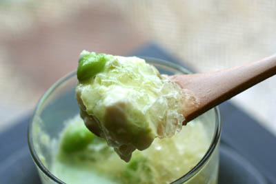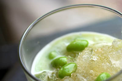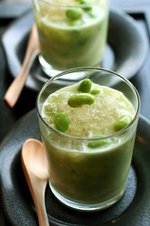 いつもはえだ豆をスープ状にしたものをゼラチンで固めてますが、今日はそのままスープ状で・・。
