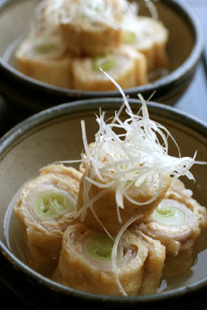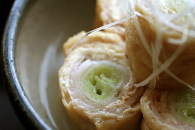 *ねぎと豚バラ肉の揚げ巻きのスープ煮*