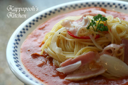本来は、あんかけパスタは麺は太いものを使うのですが、私はちょっと細めのスパゲティーニを使いました。
