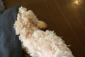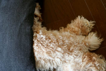 え・・・っと。座布団の中に頭を突っ込んでるところ(汗)。