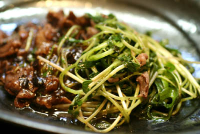 *空芯采と牛肉のトウチ炒め*