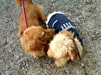 ぷーはよく会ってるワンちゃん達です。ぷーは犬見知りが激しいのであまり仲良くなってなかったのですが、びーちゃんは社交的かも!
