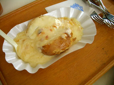 溶かしたチーズを蒸したポテトの上にとろ~りと・・。