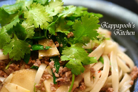 パクチーが買ってあって、急に食べたくなったので、昨夜はうどんで作りました。