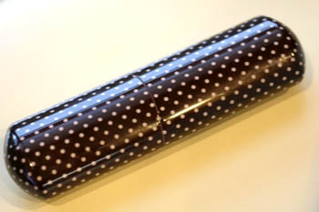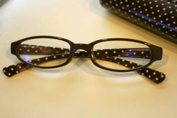 茶色のフレームに、白いドット柄。
