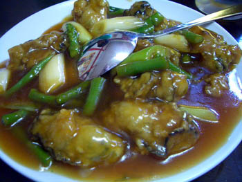 牡蠣とにんにくの芽の炒め煮。美味しいです。