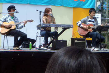 子供からお年寄りまで幅広い層の人達が集まる中、オリジナルの曲で楽しませてくれました。