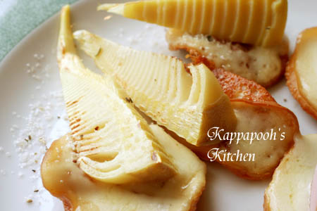 で、先日皮付き筍を買ってきてゆでておいたので、それを一緒に合わせてクレイジーソルトを振りかけただけです。